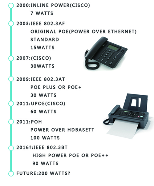 比如我們家用普通固定電話,不需要額外電源,即使家里停電能撥打電話,因?yàn)殡娫捑€不僅可以傳輸話音信號(hào),也負(fù)責(zé)給電話機(jī)供電(智能電話由于功率加大,有時(shí)也需要額外的電源)。由此POE(以太網(wǎng)供電)技術(shù)應(yīng)運(yùn)而生。