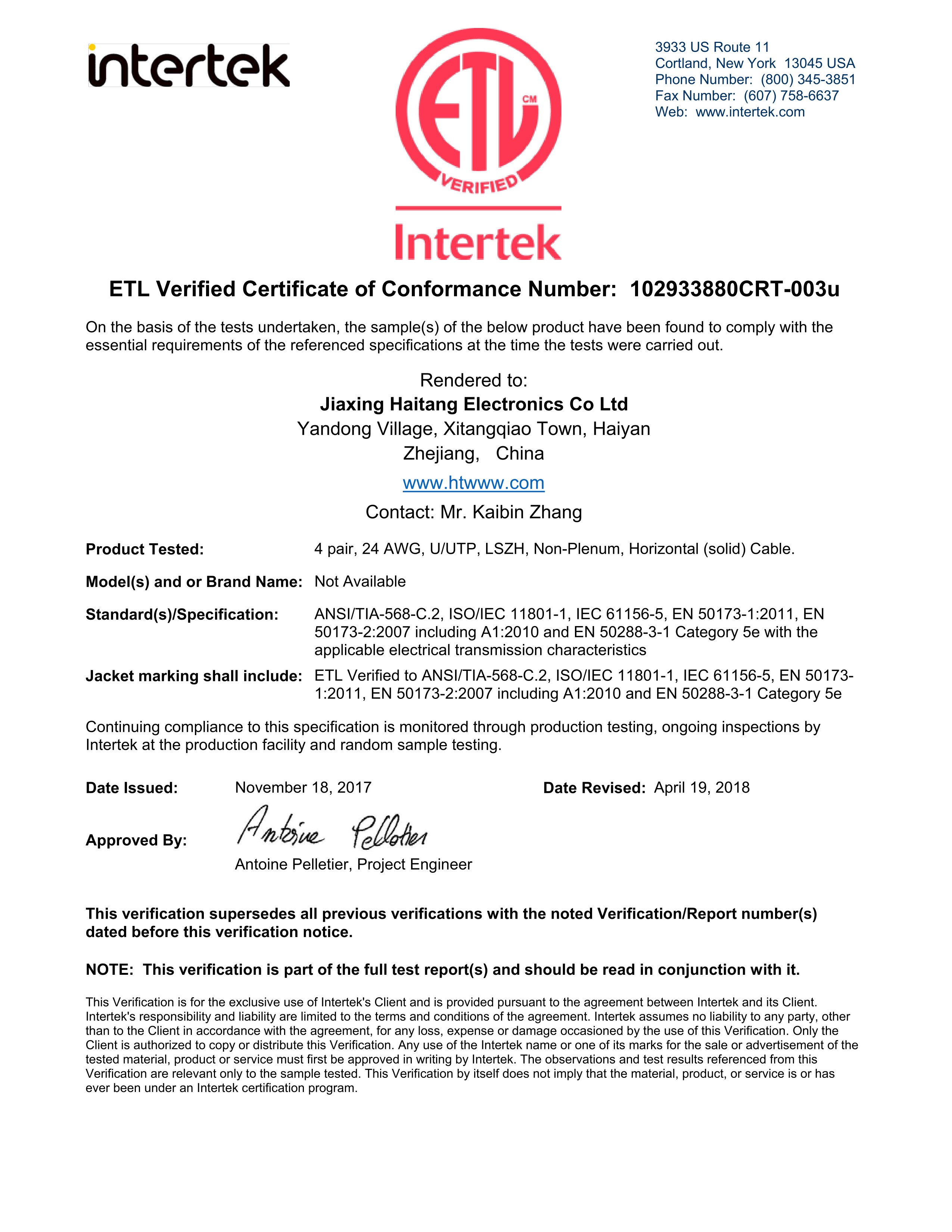 UUTP CAT5E 24AWG LSZH ETL性能認(rèn)證