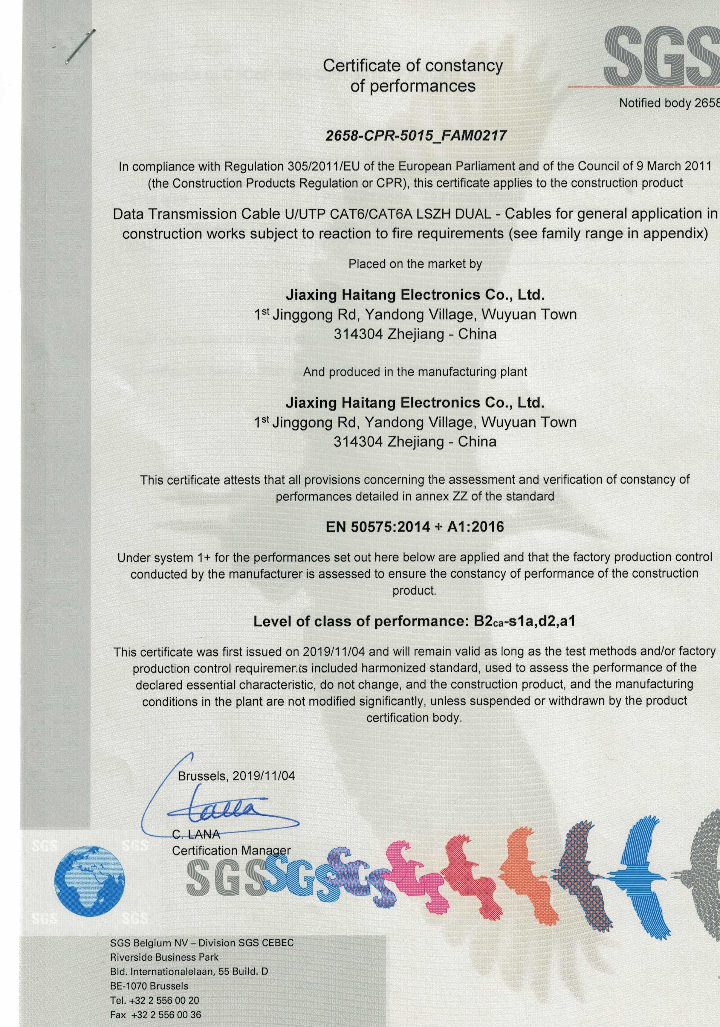 UUTP Cat 66A LSZH DUAL SGS CPR B2級認證