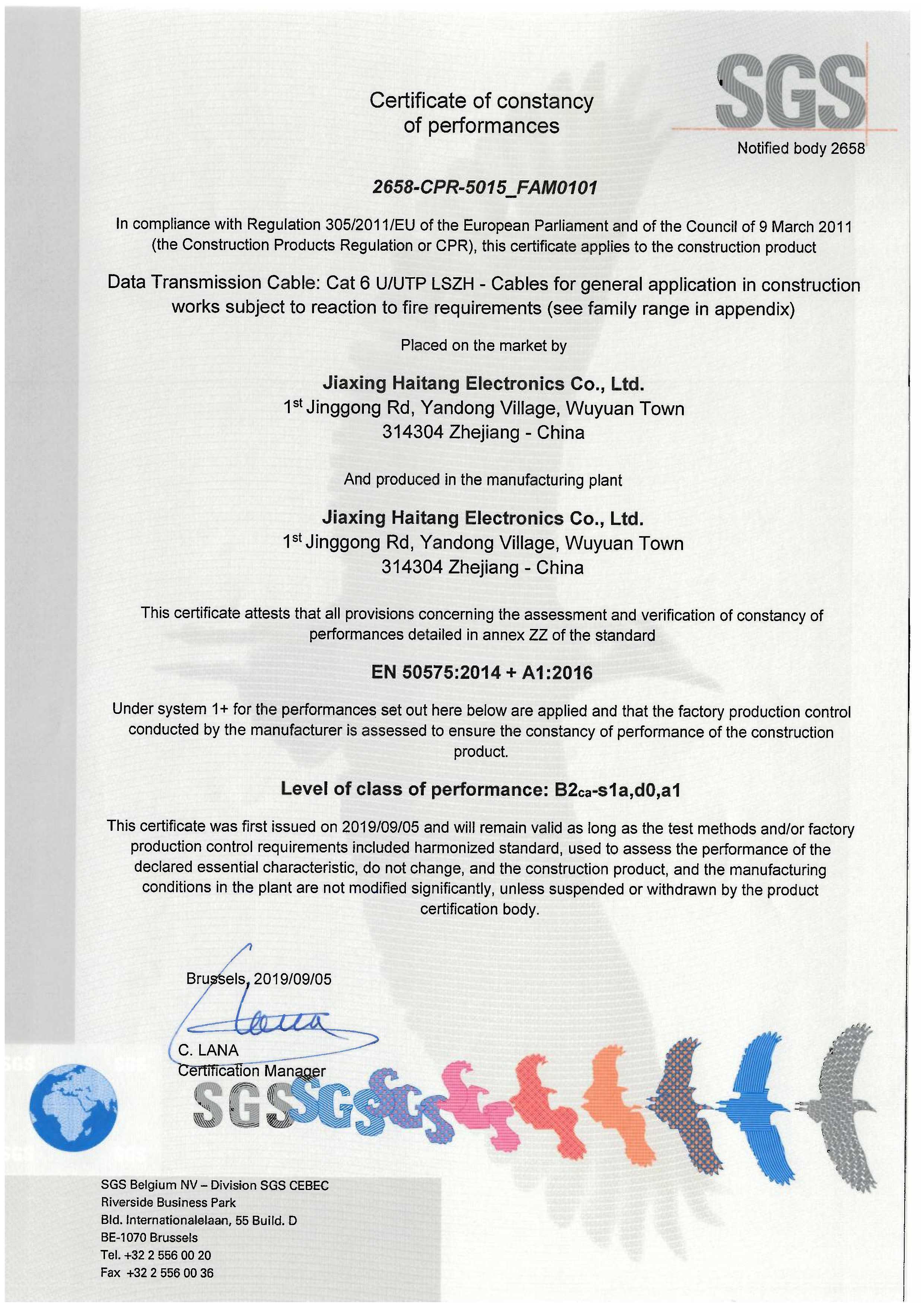 UUTP Cat5e LSZH SGS CPR B2級